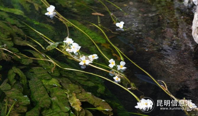 灌溉有机蔬菜的是千年古潭水,清流上长出了白色的小花