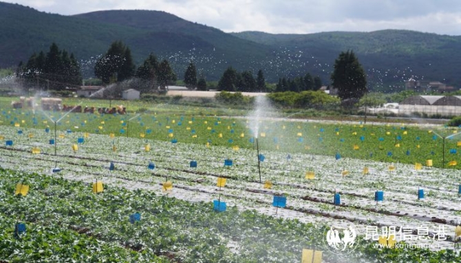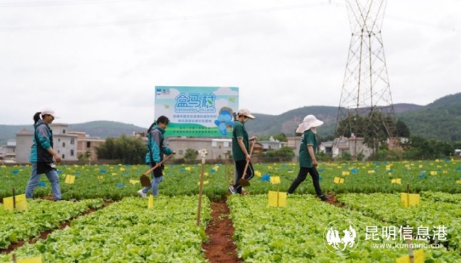 盒马村所在的松华坝基地,位于云南昆明盘龙区滇源街道中所村,海拔1993米,以叶菜种植为主。这里是昆明市“高原明珠”滇池的上游源头之一。
