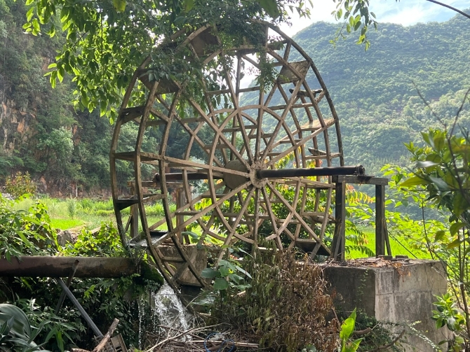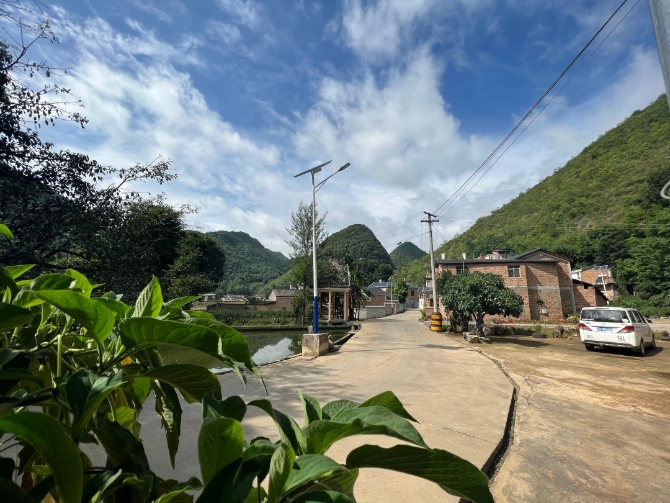 蚌谷乡水头村是一个壮族集居的村寨,居住着12户壮族群众。记者进入水头村,只见一条干净、平坦的水泥路穿村而过,一盏盏干净明亮的路灯矗立路旁,带有壮族特色的住宅错落有致地分散在路旁,房屋和围墙上画着壮族村民日常劳动的生活场景、农耕文化的墙画,一条清澈见底的山水从村前流过,“望得见山、看得见水、记得住乡愁”的美好愿景,在水头村体现得淋漓尽致。