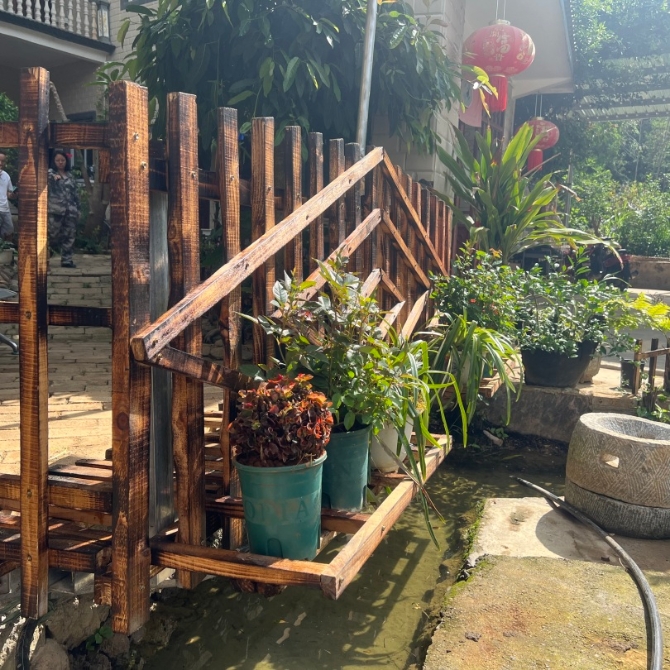 记者采访时,一村民家的庭院建设吸引了记者注意,了解后得知是水头村的村小组长白兴刚家,他带头先对自家院子进行改造,地面上铺满了地砖,院墙外围也被她利用起来,两层小楼房前种上不同品种的花草树木,凉亭、假山、小拱桥……闲暇时候可以去荡秋千,听泉声,和三五好友饮茶聊天,观赏庭院美景。
