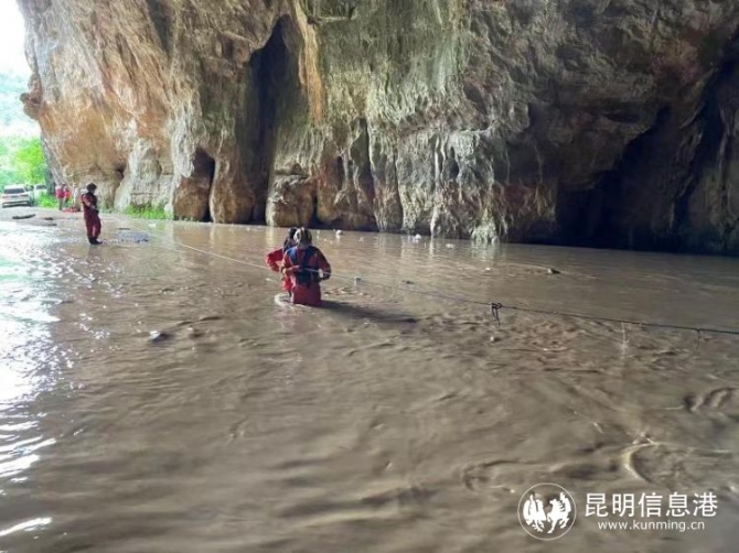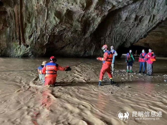 5月22日中午14时26分,昆明市宜良县消防救援大队接到报警称:位于宜良县九乡乡三角洞,6名人员组成的露营团,因下雨河水暴涨,被困于三角洞内,亟待救援。