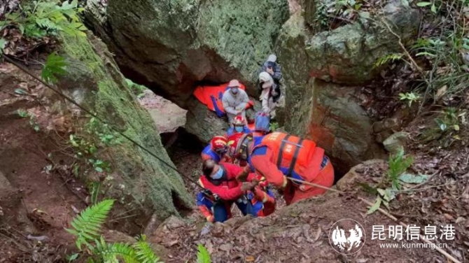 “队长,这也难走啊,不但陡峭,而且非常滑”,“没办法,难走也得走,时间不等人了”。指挥员下令:救援人员利用绳索在上方固定,延绳索下滑到洞穴底。搭建好固定点后,救援人员下到洞穴底,距离被困人员位置还有100米左右,却再一次被河水隔开。
