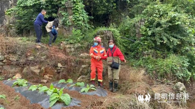在原路返回途中,到达那狭窄陡峭的石壁路时,又面临另一难题,那条石壁路,由于下过雨后,石壁湿滑,徒手根本不能攀爬上去,救援人员只能利用绳索制作支点,利用全身吊带将6名人员拉上去。待绳索固定完毕后,“马丙翔,将防坠落部件包里的2套全身吊带放下来,毛军、徐学刚,你俩先延绳索爬上去,在上面寻找粗一点的树干固定主绳和安全绳”,指挥员立即下达了救援方案。