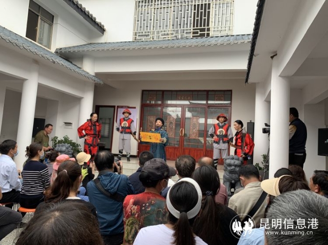 在嵩明县杨桥街道龙街社区四合院,昆明戏剧家协会文艺家为现场观众演绎了廉政庭院剧《钱南园》。该剧目讲述了钱沣步入官场,恪尽职守、忠于国家、体恤百姓、不忘初心。全剧在滇剧艺术家惟妙惟肖的表演下,颂扬了钱沣廉洁奉公、刚正不阿、不畏强暴的气节,为观众上了一节别出心裁的党风廉政课。