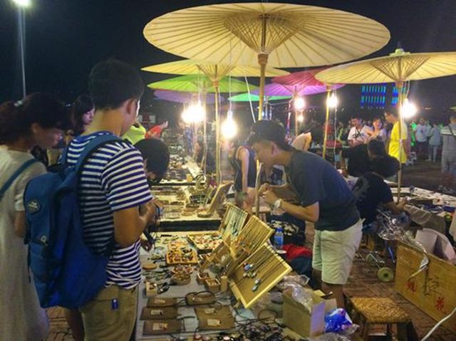 这个极具个性的创意市集融合了创意、艺术、夜市文化三大元素,每天,创意手作艺人会携自己精心设计的扎染、布艺、串珠、陶艺、编织等原创文创产品,在现场进行展示交流。除此之外,还有乐队演出、街头表演、东南亚歌舞展演等一系列丰富多彩的艺术表演贯穿全场。在这个热闹的集市上,打造了一个个凸显云南文化、融合文创艺术的展示平台。