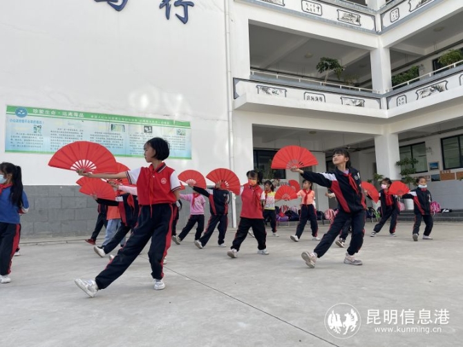“拿扇子的这只手,手腕打直,把笑脸露出来。”学校舞蹈课上,学校老师正在带着学生排练节目,加入民族元素的舞蹈《雪龙吟》格外显眼,这是洱源县宁湖第二小学在为即将到来的六一儿童节专门编排的节目。除了舞蹈《雪龙吟》,白族唢呐吹打乐、白族舞蹈霸王鞭、八角鼓等独具特色的民族舞蹈是儿童节的亮点之一。