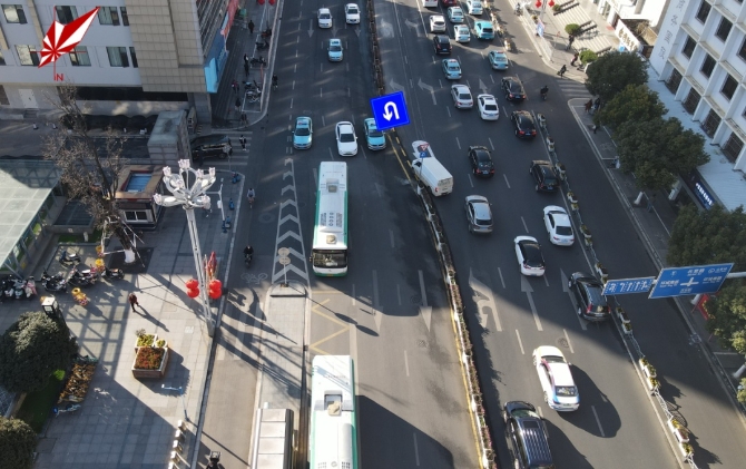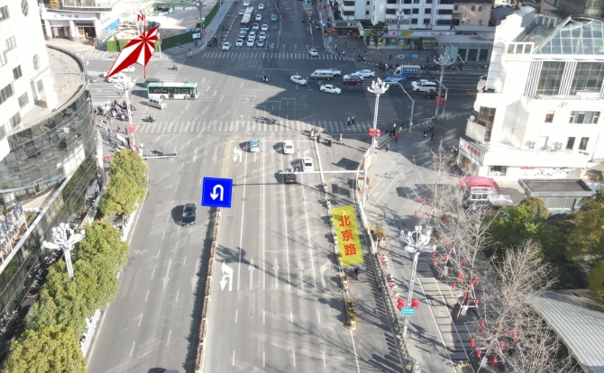 2、北京路与拓东路交叉口南口为路段提前掉头,即掉头车辆在确保安全下,减速让行对向车辆,缓慢掉头。