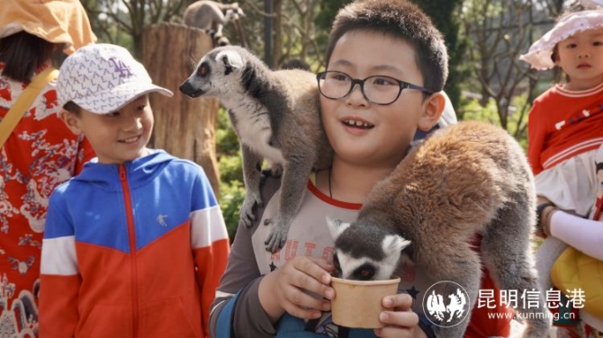 6686体育讯 记者段佳琪 “六一”国际儿童节即将到来,近日,云南野生动物园特招募10名小朋友,在园区举办了一场别样的“六一”活动,邀请小朋友们为新出生的环尾狐猴宝宝庆生,并开展了动物知识科普活动。