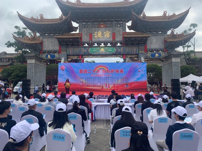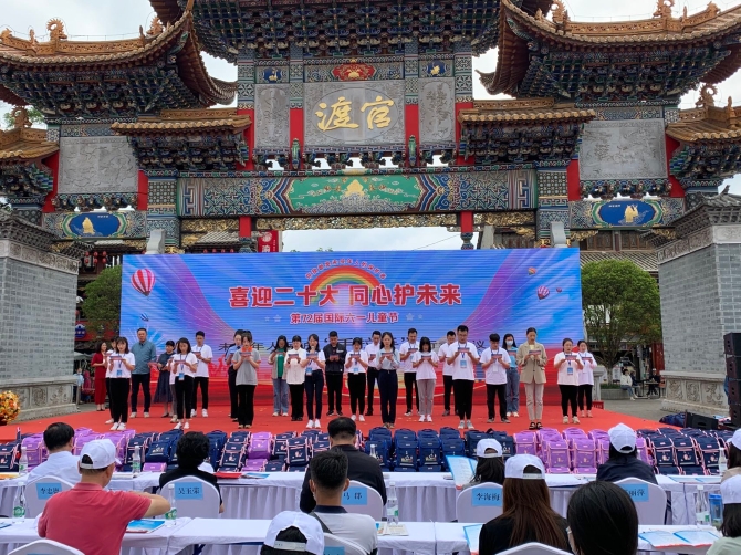 6686体育讯 记者朱俊杰 张玉玲 6月1日,由云南省未成年人保护办公室(以下简称省未保办)、昆明市未成年人保护办公室(以下简称市未保办)主办,官渡区未成年人保护办公室(以下简称官渡区未保办)协办的“云南省暨昆明市第七十二个‘国际儿童节’官渡区‘喜迎二十大,同心护未来’六一儿童节宣传活动”,在官渡古镇举行。省未保办常务副主任、省民政厅党组成员、副厅长吴玉荣,市未保办副组长、市民政局局长马郡、官渡区未保办常务副组长、区委常委、副区长黄忠梁等领导同志,与昆明市未保办,官渡区未保办成员单位代表百余人参加了本次活动。