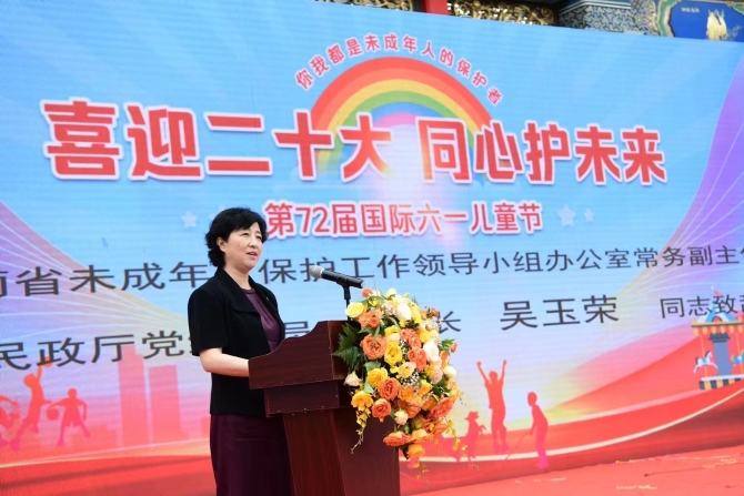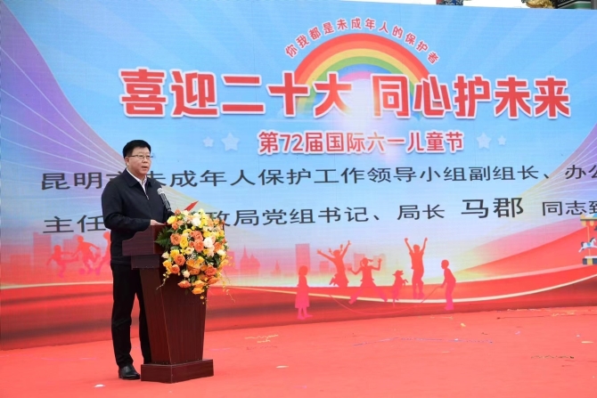 活动在官渡区青少年宫孩子们表演的《和你一样》《草原小搏克》精彩歌舞节目后,拉开序幕。吴玉荣副厅长致辞表示,经不懈努力,我省未成年人保护协调机制实现了省、市、县三级全覆盖,未成年人关爱保护基础更加牢靠,家庭、学校、社会、网络、政府、司法“六大保护体系”初步建立。吴玉荣要求,要把做好儿童工作和未成年人关爱保护放在重要位置,各级民政部门要做好三个方面工作:一是发挥好民政牵头作用,充分凝聚未成年人保护工作合力;二是履行好民政职责,夯实未成年人保护工作基础;三是统筹开展宣传,营造全社会关心关爱未成年人的良好氛围。