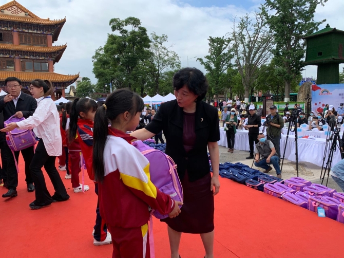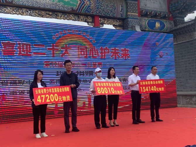 活动现场,云南省慈善总会、云南省教育基金会和云南省青少年发展基金会向官渡区捐赠近30万元儿童物资,包括书包、书籍、体育用品等等。吴玉荣副厅长、马郡局长向儿童代表现场发放了物资。