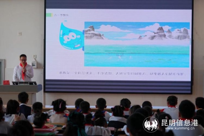 为让孩子们在温情与爱意中快乐学习,学会分享和表达,昆明市测绘研究院博士何江龙准备了科普课程。用手绘漫画的形式描述《一滴水的奇妙旅行》,以通俗易懂的手法生动给同学们讲授了水循环、水源保护的专业知识,互动环节,同学们积极踊跃地抢答问题。