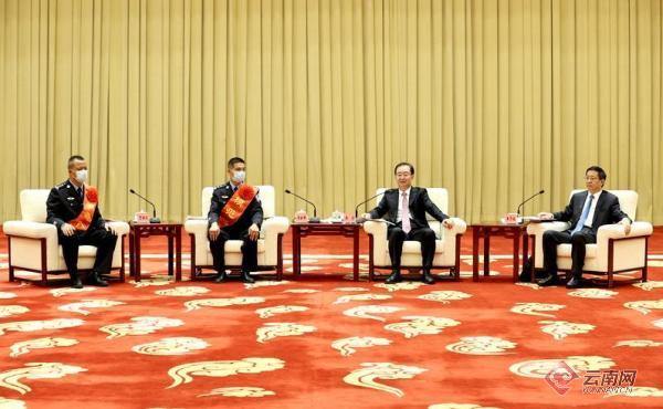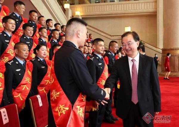 省委省政府领导会见全国公安系统英雄模范立功集体云南代表。记者 雷桐苏 摄