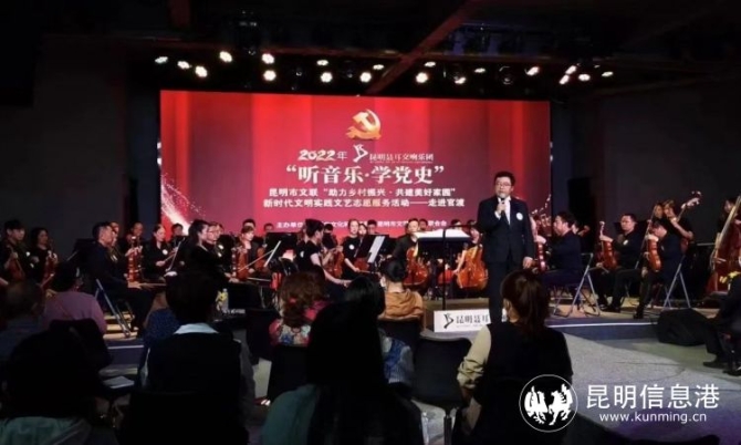 此外,在昆明市文联的邀请下,民间毕付华、陶志勇,戏剧艺术家王文、顾培华等多位艺术家,还为70余名舞龙舞狮、花灯表演学员开展了现场培训。把传统戏曲和习俗带到乡村,用传统文艺助力乡村振兴,把传承传统文艺思想的种子播撒在了乡村大地上。昆明聂耳交响乐团也特别策划了“听音乐·学党史”交响乐音乐会,从曲目的策划、设置到演出别具匠心,将中国共产党取得的成就以音乐的形式进行高度概括和总结,激发听众的爱国情怀,坚定大家更党走的决心和信心。同时,乐团还通过公益性惠民演出的形式,组织了85名音乐家将《天堂电影院》《茉莉花》等经典曲目带到宜良,在普及交响乐知识的同时,搭建了高雅艺术与民众的沟通桥梁,让当地群众足不出户就可以近距离欣赏到高水平的文艺演出,满足群众对高雅艺术的需求,丰富大家的精神文化生活,有力的推动了地区精神文明建设。