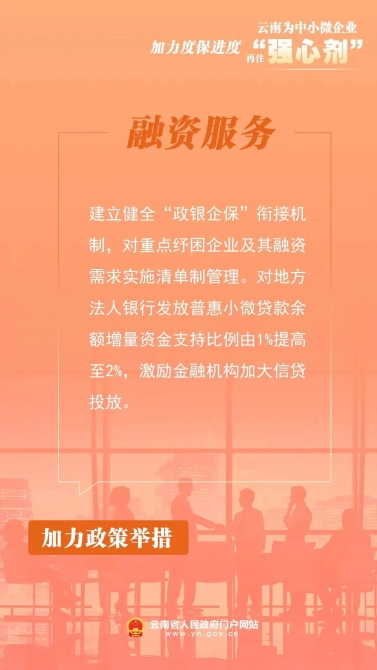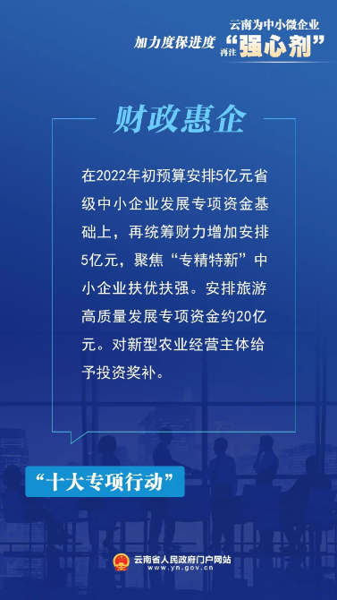 为深入贯彻落实党中央、国务院关于稳住经济大盘、助企纾困的安排部署,确保政策落地见效,云南省人民政府办公厅印发《云南省进一步帮扶中小微企业纾困发展工作方案》,助力中小微企业实现平稳健康发展。