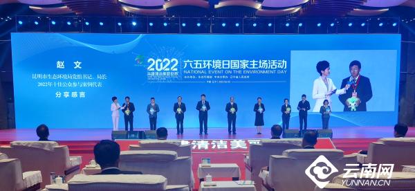 现场公布了最美生态环境志愿者候选人、十佳公众参与案例、十佳环保设施开放单位。其中,由昆明市生态环境局组织申报的——“我参与 我践行 助力COP15”系列活动荣获2022年“十佳公众参与案例”。