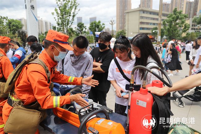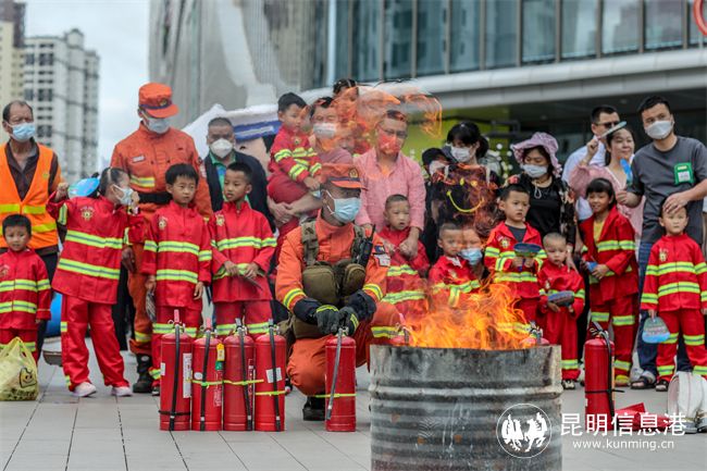 宣传过程中,全体消防救援人员作风严谨、举止文明,充分体现了森林消防队伍的良好形象和过硬素质,不仅圆满完成了既定的防火宣传任务,还积极与驻地消防救援队伍和商场沟通协调,共同为商场周边居民、儿童开展了一场“我是小小消防员”的职业体验活动,以开展小游戏、有奖知识竞赛为牵引,吸引人们参与到活动当中,强化人们的消防安全意识。对灭火器操作使用、消防安全常识进行了一一讲解。