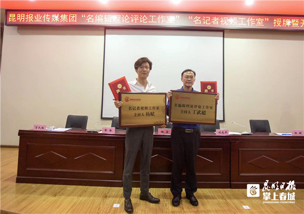 为强化新闻领军人才队伍建设和专业人才培养,经过近半年的筹备,6月6日下午,昆明报业传媒集团举行“名编辑理论评论工作室”“名记者视频工作室”授牌暨开班仪式。聘请丁武超、杨赋两位采编业务骨干分别担任工作室主持人,来自集团各媒体采编岗位的190人参与培训。