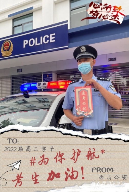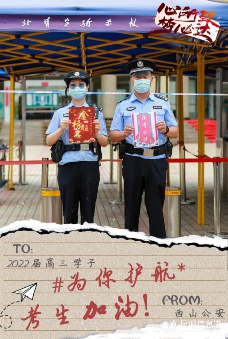 藏蓝“护考团”送上真挚祝福——翻越千山万水,你将光芒万丈!祝福所有考生用漂亮的答卷入场盛夏的远方。加油!!!(6686体育 记者合宇聪 西山警方供图)