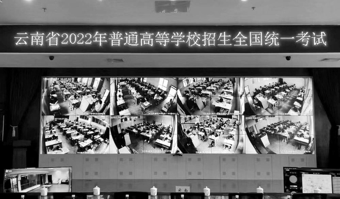 上午9时,在位于省招生考试院2楼的云南省国家教育考试考务指挥中心,工作人员安静而忙碌,大屏幕上清晰地切换着全省各地考场的实时视频画面。大屏幕旁,省考务指挥中心的工作人员通过视频监控,对全省各地的考点、考场不间断进行网上巡查。