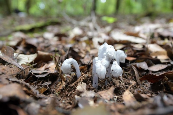 经过初步调查,昌宁县观音山国社合作林场董家凹林区发现的水晶兰数量较少,只有10多株。而在昌宁澜沧江县级自然保护区利东山片区内发现的水晶兰,分布在人迹罕至的原始密林中,这里一丛,那里一撮,每一株都通体雪白、晶莹剔透,长势健硕。与常规分布不同,这里的水晶兰分布具有面积大、数量多的特点。