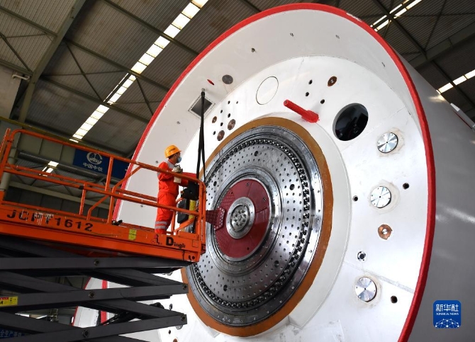 工人在位于河南省郑州市的中铁工程装备集团盾构机总装车间作业(2020年3月18日摄)。新华社记者 李嘉南 摄