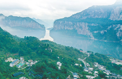 航拍贵州省黔西市新仁苗族乡化屋村化屋小学(图中左下角)。