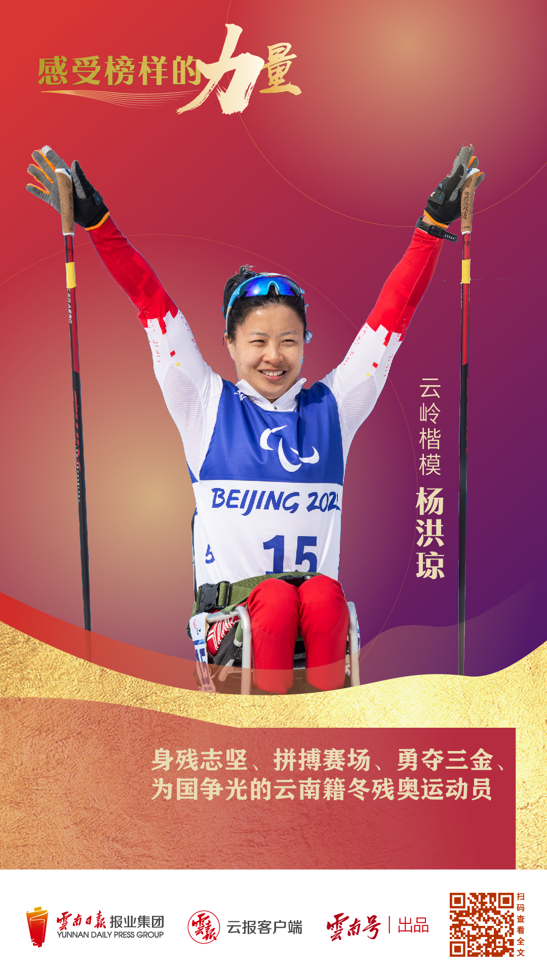 2022年初春,北京冬残奥会启幕,出生于云南省曲靖市罗平县钟山乡的杨洪琼,在这场冰雪盛宴中成为了世界瞩目的焦点,开启了人生的高光时刻——她荣获了2022年北京冬残奥会越野滑雪女子长距离坐姿金牌、女子中距离坐姿金牌和女子短距离坐姿金牌,成为首位在一届冬残奥会上获得3枚金牌的中国运动员;她担任了本届冬残奥会闭幕式中国体育代表团旗手,被授予“北京冬奥会、冬残奥会突出贡献个人”称号……