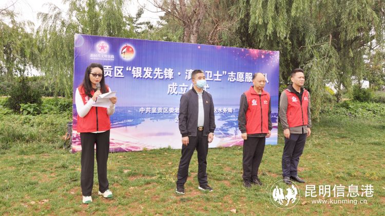 活动仪式上,呈贡区文明办副主任陈孝帅为呈贡区“银发先锋·滇池卫士”志愿服务队进行授旗,志愿服务队代表接受队旗并作表态发言,向广大的离退休干部发出了弘扬志愿者精神、开展保护滇池志愿服务活动的倡议,争做整治河道治理的参与者,争做保护美丽呈贡的行动者,争做环境保护的倡导者、维护者、捍卫者、监督员、宣传员,为呈贡实现“河畅、水清、岸绿、景美、人和”的生态环境,为滇池治理贡献银发力量。