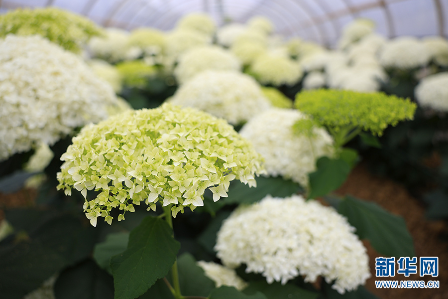 云南古滇花部落商贸有限公司种植的绣球花(6月10日摄)。新华网 徐华陵 摄