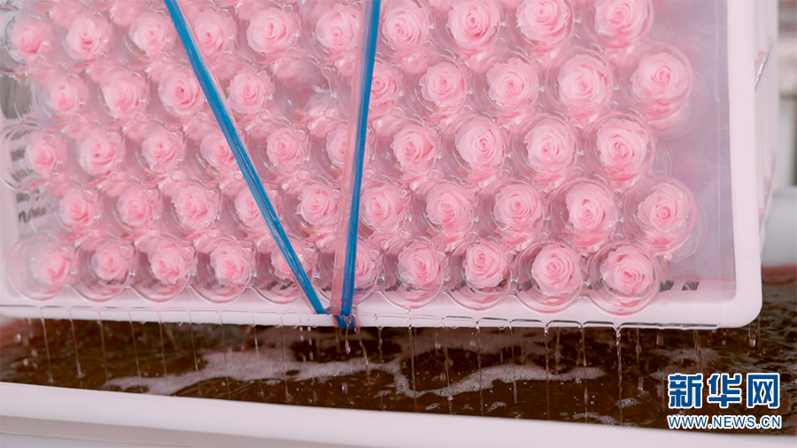 永生花制作过程可以对玫瑰的颜色进行更改(6月10日摄)。新华网 徐华陵 摄