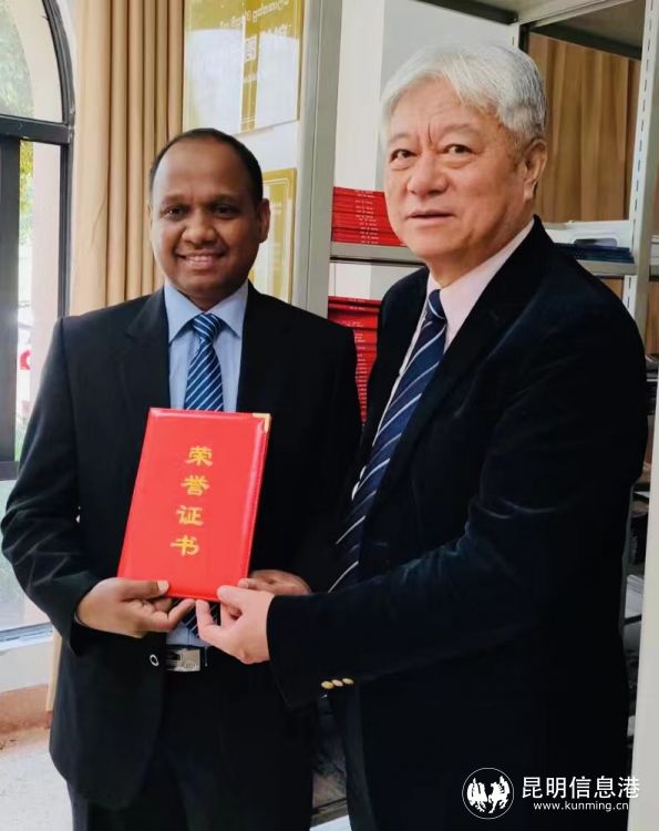 在简短、简朴的剪彩仪式之后,刘树森院长向苏嘎特先生颁发了荣誉证书,出席仪式的全体师生在“中斯友谊图书馆”铭牌前合影留念。出席剪彩仪式的还有谢萍、臧运发、王浩三位副院长和僧伽罗语专业部分师生。