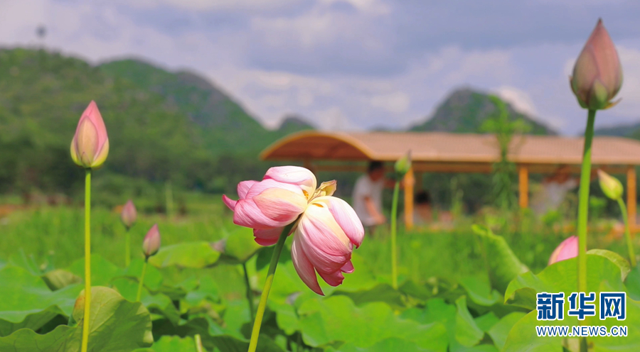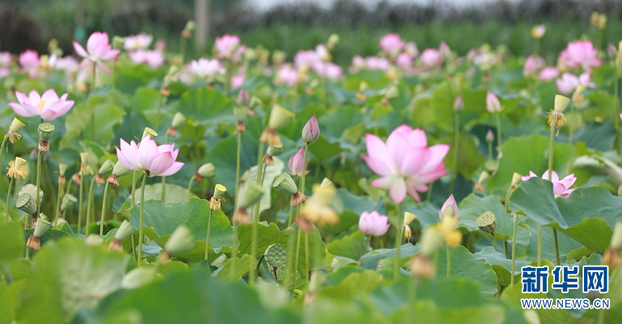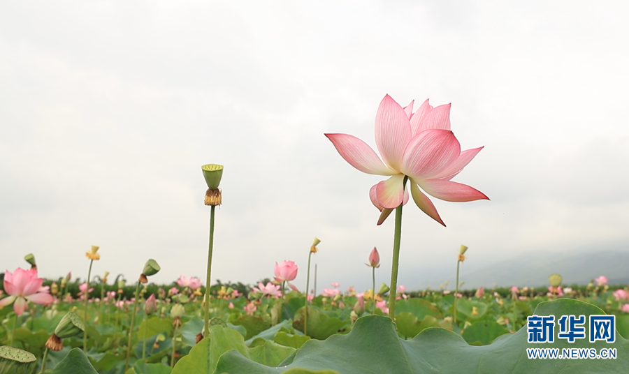弥勒市竹园镇万亩荷田的荷花(6月9日摄)。新华网发 弥勒市融媒体中心供图