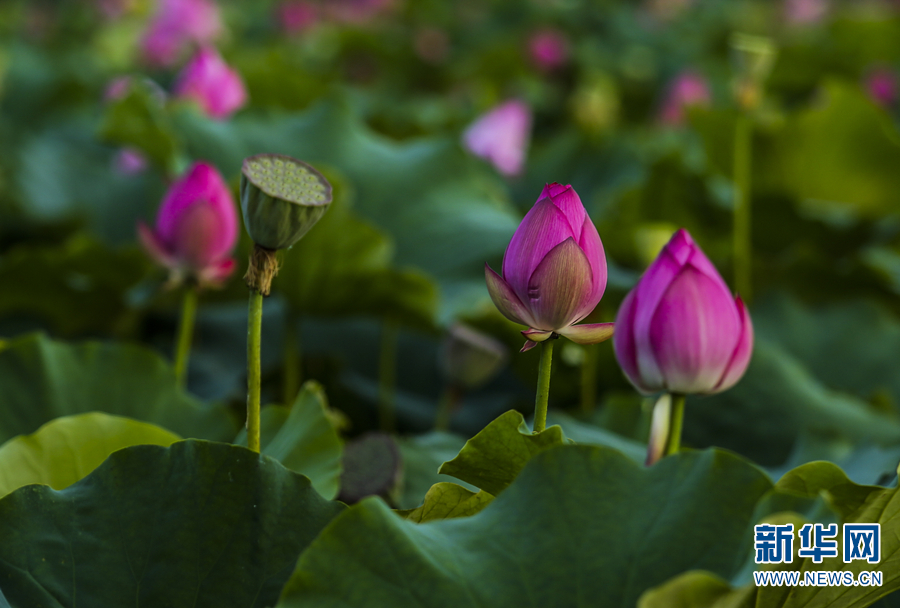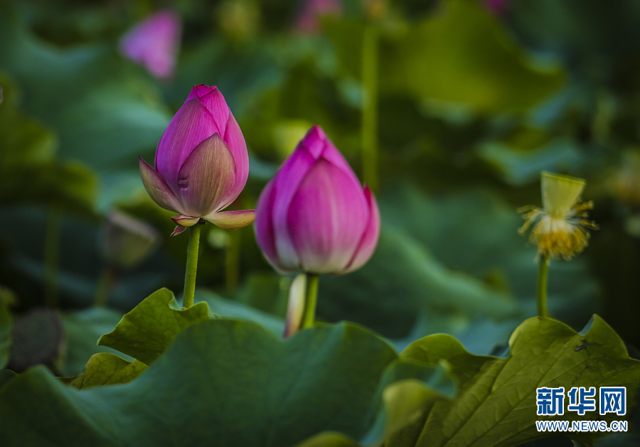 普者黑景区荷塘内的花苞(6月10日摄)。新华网发(中国摄影家协会会员 纪军 摄)