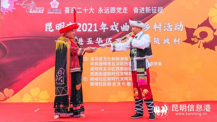 两场戏曲进乡村的演出,不仅让本地居民大饱眼福,更让前来参加昆明市中小学生自行车赛的运动员和来宾感受到了西翥人民的奔放与热情。“喜迎二十大永远跟党走奋进新征程”,原创歌曲《西翥美》《白家酒歌》、舞蹈《一带一路》、戏曲表演《迎来春色换人间》.....演出现场掌声不断,“真是太好看了!”现场观众纷纷大声喝彩。