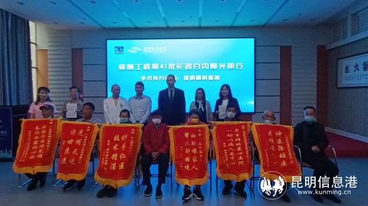 在即将出院之际,8名被救助的患者分别为“亮睛工程”、五华区妇联、昆明眼科医院送上锦旗和感谢信。