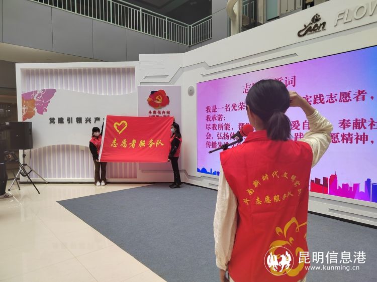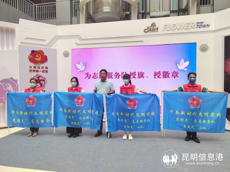 启动仪式现场,与会领导为斗南“花精灵”志愿服务队和“七色堇”志愿服务队授予了队旗。全体志愿者进行了庄严的志愿服务宣誓承诺。现场公布了《斗南新时代文明实践志愿服务积分积分兑换和管理办法(试行)》,明确了斗南新时代文明实践志愿服务各积分超市的具体兑换方法。