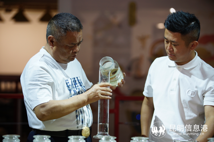 当天下午,徐强携爱徒王玮现场为嘉宾演示国酒酱香勾调技艺,师徒二人通过七轮次酒的勾调,一款酱香四溢的美酒呈现在众人的面前,嘉宾逐一品鉴,赞叹不已。