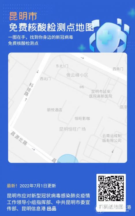 今天,个别免费核酸检测点位有调整(长按识别上图二维码可查看最新点位信息,找到离你最近的免费核酸检测点),目前全市180个免费核酸检测点每日检测时间统一为9点—12点,13点—17点。在安宁市、东川区、富民县、寻甸县设置有8个24小时免费检测点。