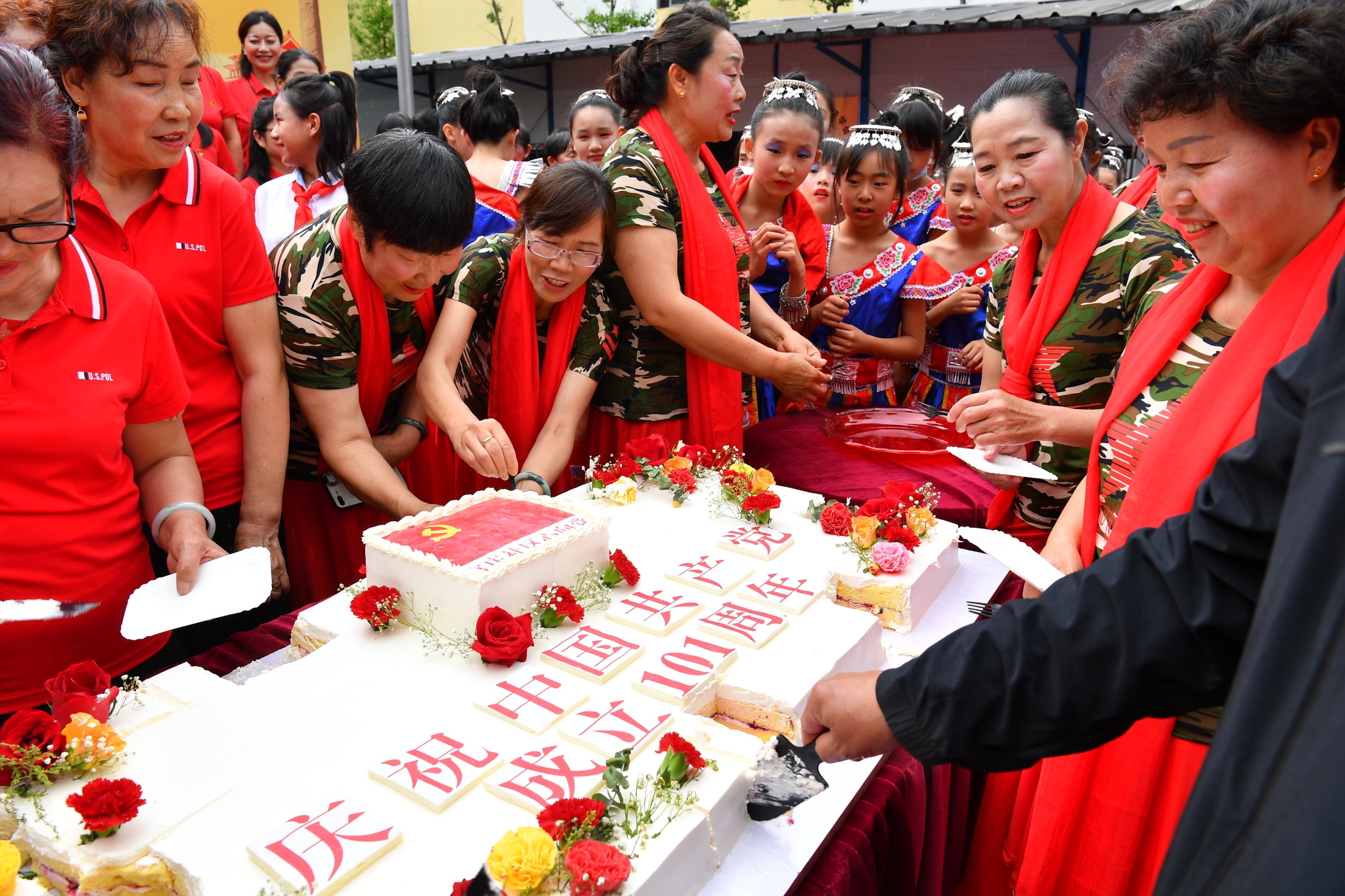 当天活动中,社区还为老党员代表颁发“光荣在党50年”纪念章,并开展“我与党旗合个影”拍照活动,活动接近尾声时,一个满含社区祝福的“庆祝中国共产党成立101周年”主题蛋糕送到了舞台上,大家一同品尝美味蛋糕的同时也为党送去了真挚祝福。