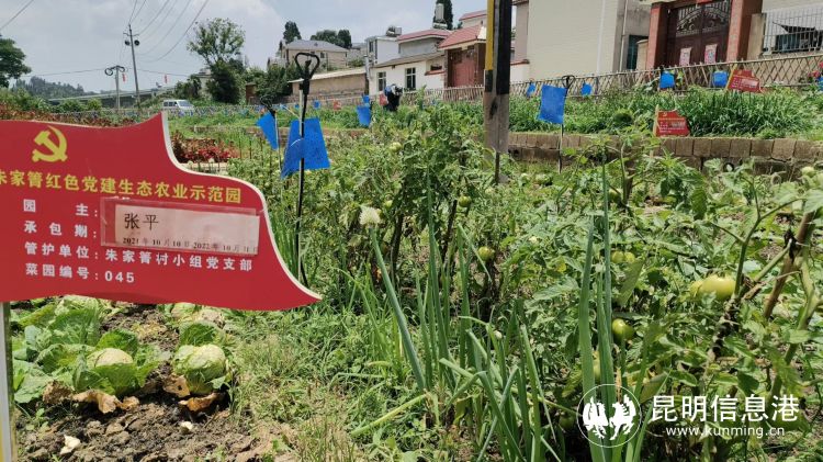 来到禄脿街道庄科村,有这样一个菜园子:137块大小均匀、相互连接的生态菜园围成一个方正棋盘,棋盘中心是引人瞩目的“花卉五角星”,菜园中栽种有香葱、番茄、秋葵、土豆、辣椒、韭菜、西芹、茴香等应季蔬菜,每块菜地还插着一块红色的认养牌,蔬菜种苗采用老品种应季蔬菜,种植中不用化肥,不喷农药,完全施用有机肥,是真正的无公害“绿色蔬菜”,这就是禄脿朱家箐红色党建生态农业示范园。园间一条阶梯式瀑布河沟环绕周围,沟内睡莲旖旎,与各种无名绿植一起丰盈了清澈河水,小鱼、龙虾、泥鳅惬意其间,往来翕忽,与人相乐。