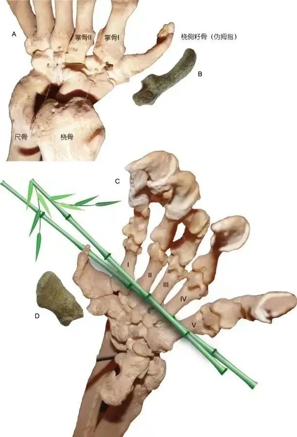 研究成果显示:大熊猫的“第六指”不像人类拇指能独立运动,它通过固定关节,与第一掌骨和舟月骨形成复合体,再与其他掌骨联动。虽然是被动抓握,但已足够为大熊猫提供吃竹子所需的抓握力。
