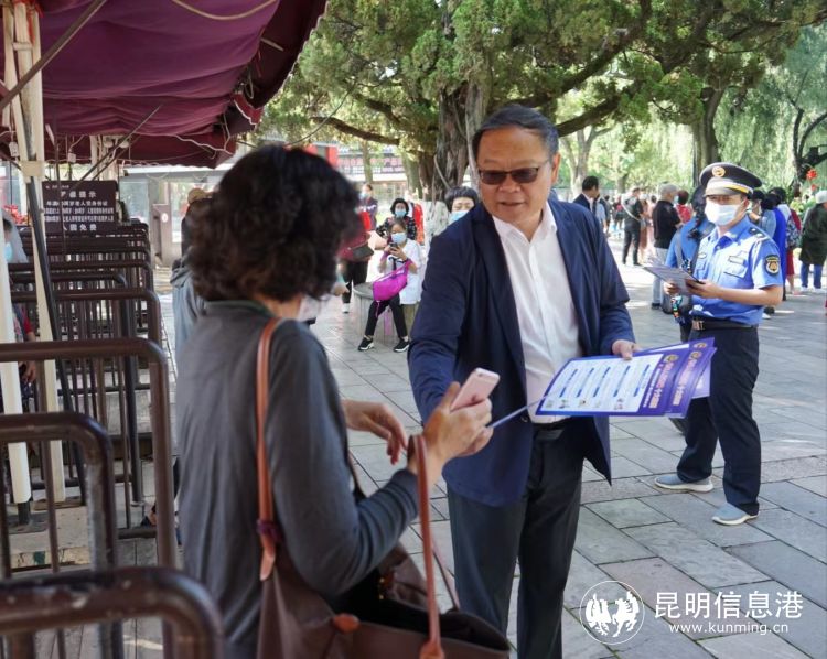 宣传活动现场,工作人员为过往游客及市民群众发放了《昆明市打击整治养老诈骗专项行动应知应会基础知识》《老年人防诈骗十大案例》《致全市老年朋友的一封信》,并耐心向群众,尤其是老年群众宣传防诈知识。“要注意养生骗局”、“谨防保健品销售骗局”、“担心假钱换真钱和中奖骗局”,现场为老年人提供的防诈案例宣传,让很多老年人感慨涨知识,以后的生活中要从观念上减少贪图便宜的想法,保持警戒心理,注意保护好个人信息,捂紧钱包口袋,避免上“免费”陷阱的当。