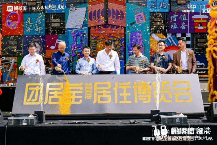 精彩盛会,荣耀启幕。上午11时许,团居宝居住服务集团董事长罗振豪先生、昆明市房地产开发与经纪协会秘书处负责人段益麟先生、团居宝居住服务集团总裁李德先生、团居宝总经理沈凯先生、招商银行金星支行行长徐浩铭先生、龙湖地产云南区域营销负责人郭勇帅先生、华夏金地世博一号营销负责人王志远先生手执金沙壶,为“团居宝首届居住博览会”牌匾金粉塑字,开启了团居宝首届居住博览会启动仪式,昆明房地产行业的一大盛会荣耀落地。
