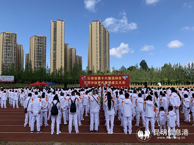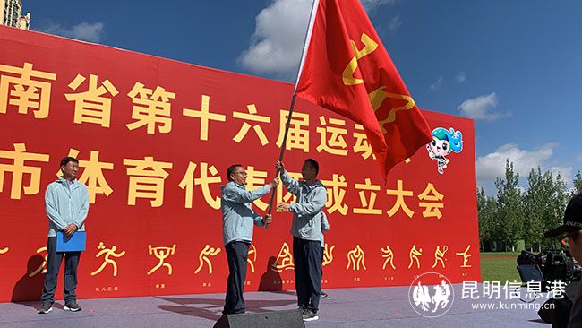 成立大会上,昆明市副市长、省十六运会昆明市体育代表团团长赵波讲话。市教育体育局局长穆仁早宣读了《关于成立云南省第十六届运动会昆明市体育代表团的通知》,运动员代表和教练员代表相继宣誓。赵波向市教育体育局局长、省十六运会昆明市体育代表团副团长穆仁早授团旗。