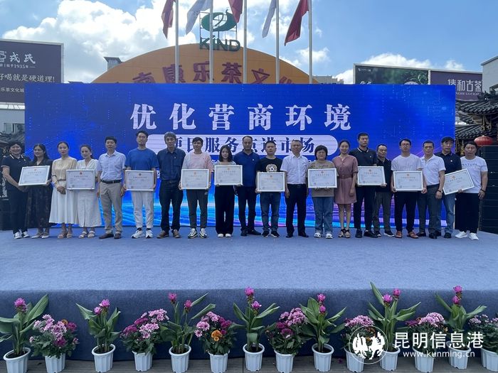 6686体育讯 记者龙泉积 7月13日,官渡区市场监管局在康乐茶文化城举行便民服务点暨行业综合许可证改革试点市场授牌仪式。现场,官渡区市场监督管理局向康乐茶文化城授予“官渡区市场监督管理局康乐茶文化城便民服务点”和“行业综合许可证改革试点市场”牌匾,并向市场内10户经营户代表颁发行业综合许可证。