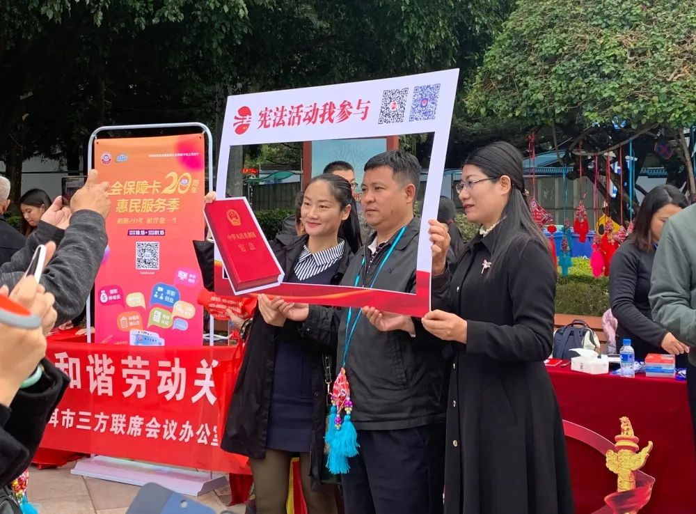 2019年12月4日是第六个国家宪法日。在宪法宣传活动现场,群众积极参与,与宪法同框。