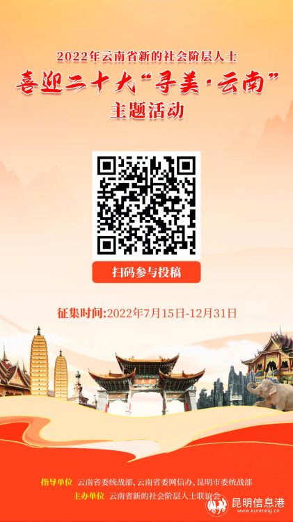 2022年云南省新的社会阶层人士喜迎二十大“寻美·云南”主题活动由云南省委统战部、云南省委网信办、昆明市委统战部指导,云南省新的社会阶层人士联谊会主办。