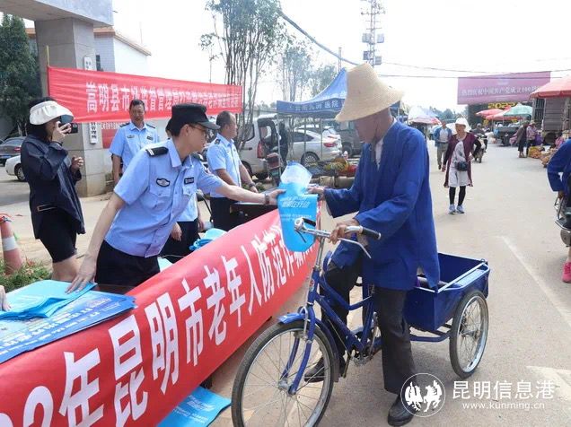 7月12日上午,嵩明公安联合县市场监督管理局、县检察院到杨桥街开展防范“养老诈骗”宣传活动。