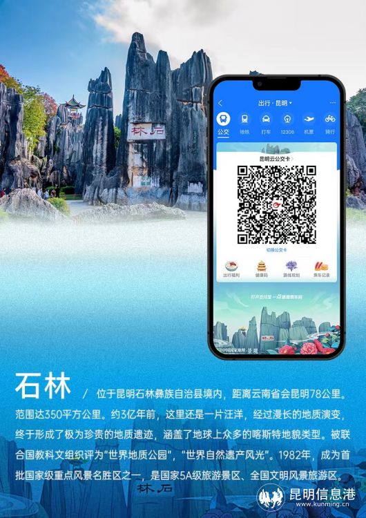 为倡导绿色出行,促进夏日消费,2022年7月15日起,支付宝联合全国各地政府和机构,在全国百城发起“绿色出行 打卡城市风景”活动。活动期间,昆明市民可在线领取绿色出行乘车礼包,抽取特色城市皮肤,还可以线下打卡绿色出行主题彩蛋车。据了解,昆明的石林风景区等出行皮肤也首次上线。